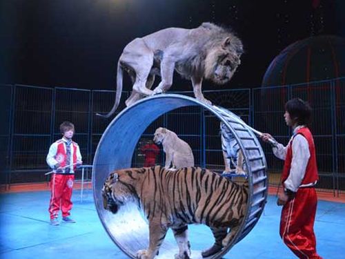 湖北馬戲表演:馴獸藝術是馴獸師通過某些手段,讓各種動物按照事先設定的動作進行藝術表演,屬于一種傳統的雜技節目。馴動物節目…